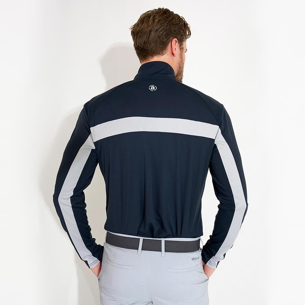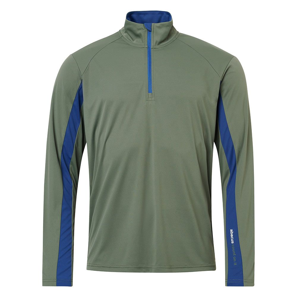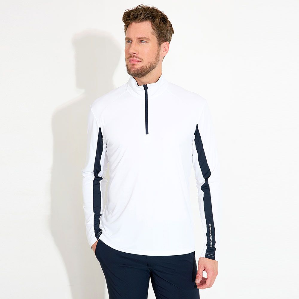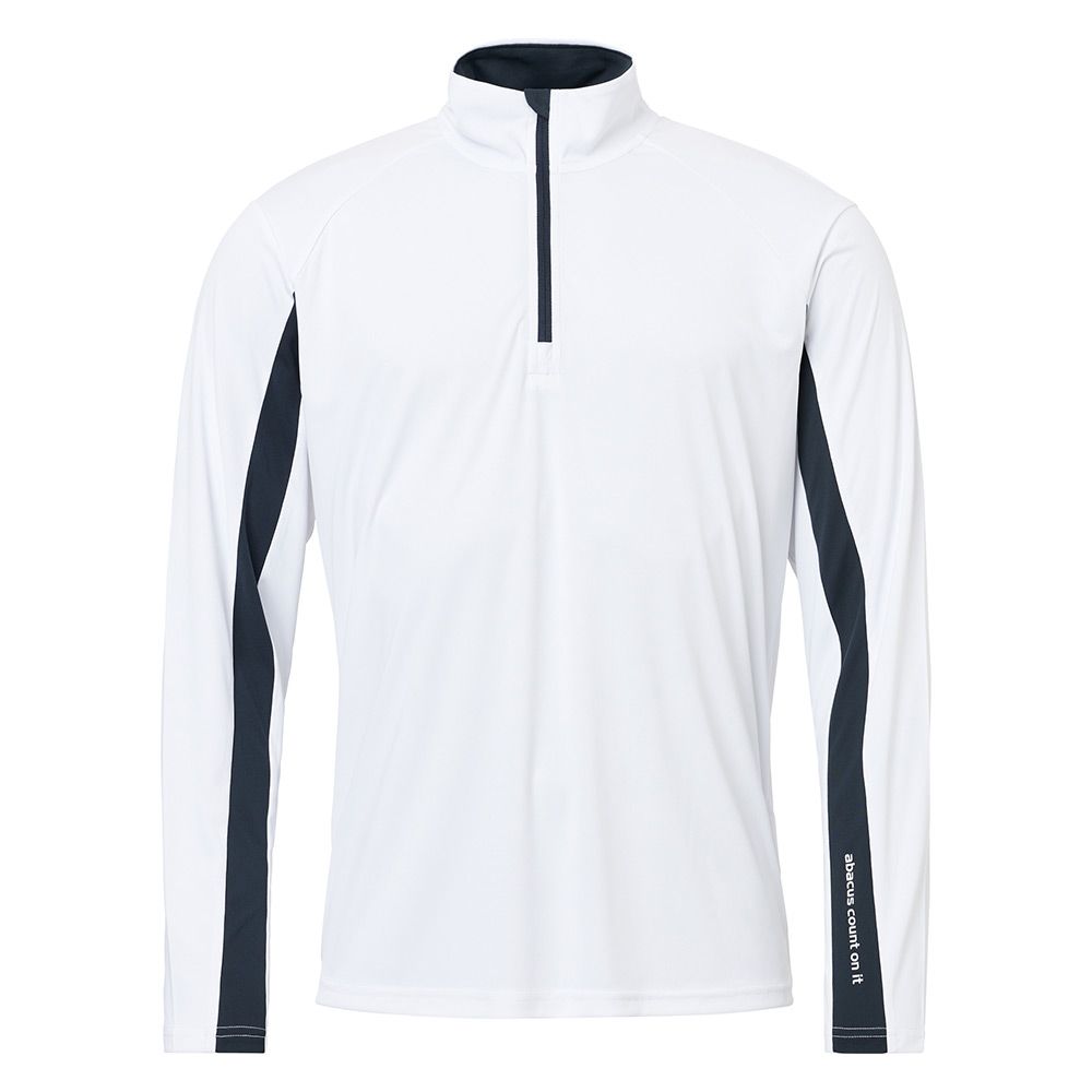 Designen inkluderar en dragkedja i halsen, polokrage, kontrastband längs ärmen och över ryggen. Abacus-logotypen pryder vänster ärm och nacken. Perfekt som ett extra lager under din piké eller att bära enskilt för ett smidigt UV-skydd ute på golfbanan.