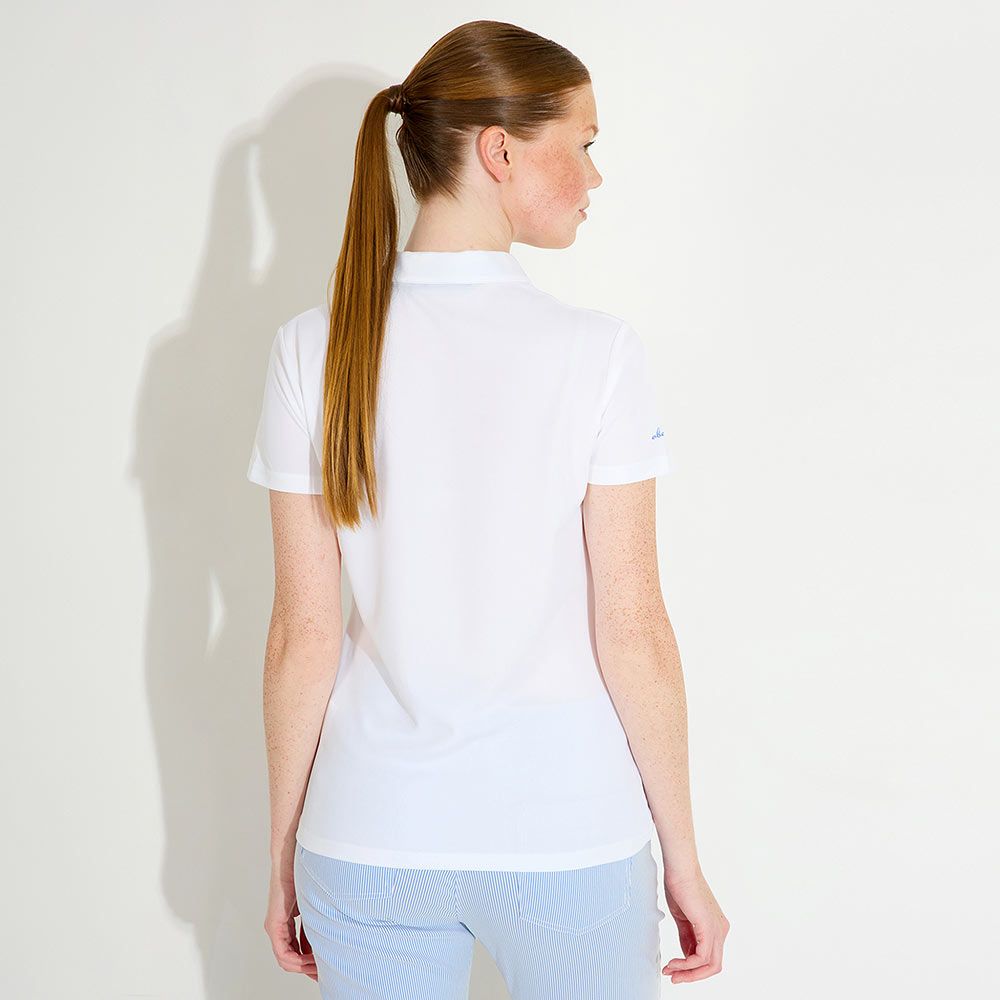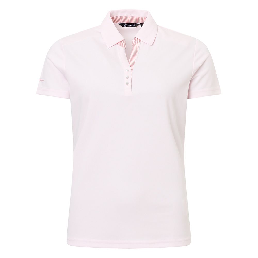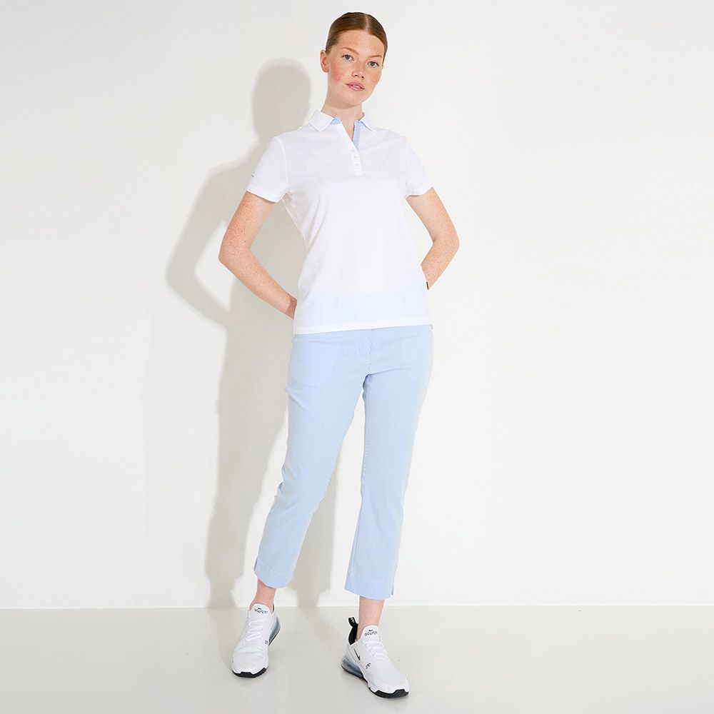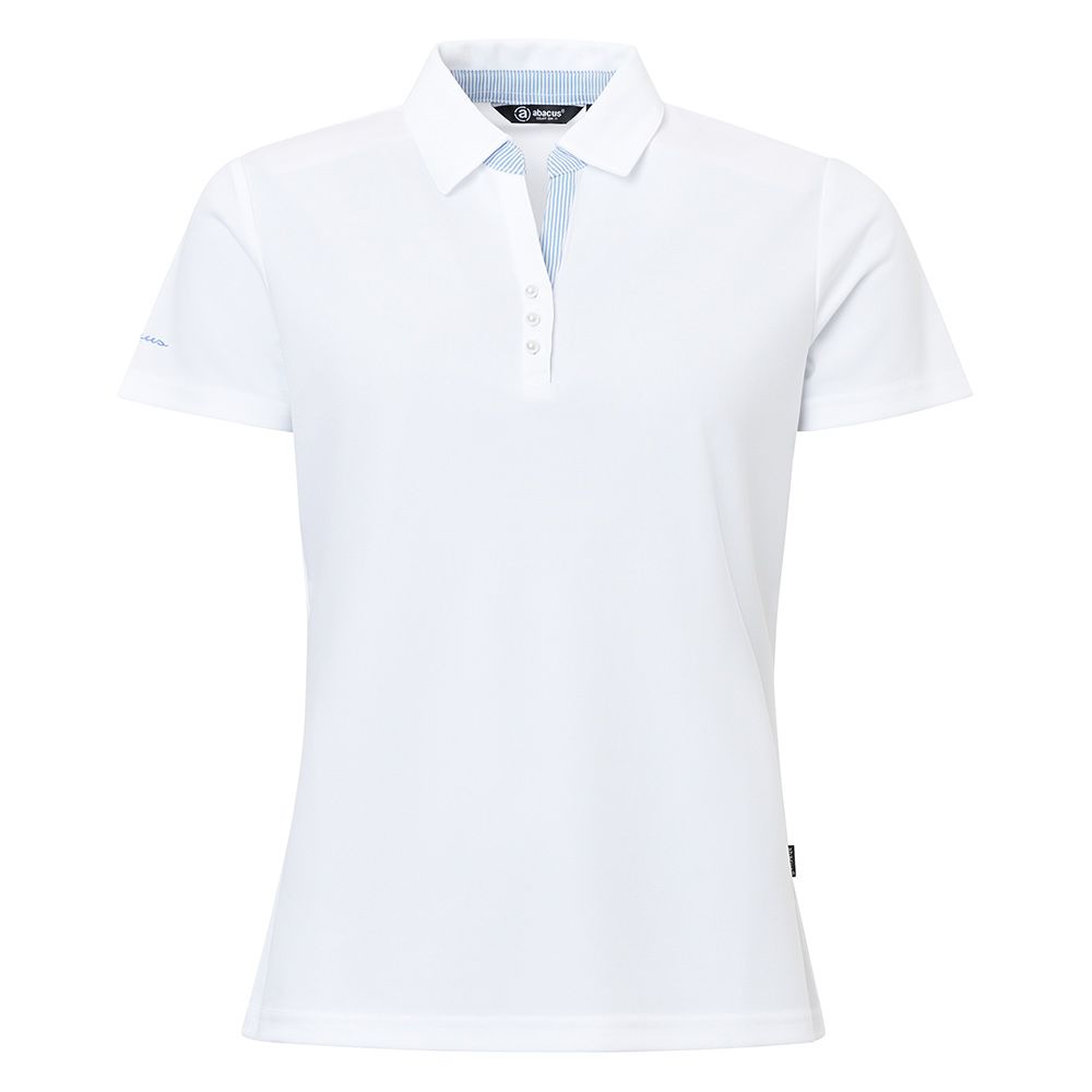 Bovey är en stilren och bekväm pikétröja med kort ärm och en feminin touch. Tillverkad av mjuk och stretchig återvunnen polyester, erbjuder den en skön passform med DryCool- och fukttransporterande funktioner som håller dig torr och bekväm hela dagen. Designen är klassisk med en skuren och sydd krage, en knappslå med tre pärlemorknappar och en elegant randig kontrast på insidan av V-ringningen. Perfekt både på golfbanan och till vardags.