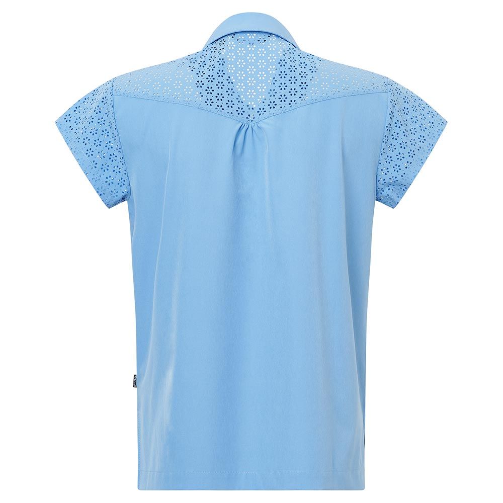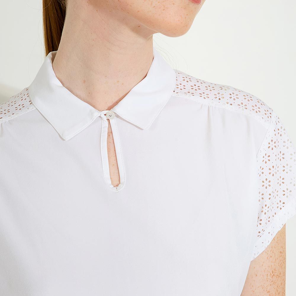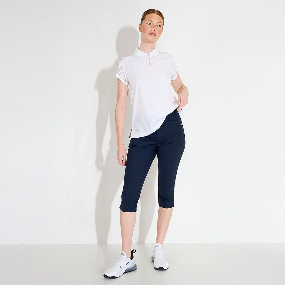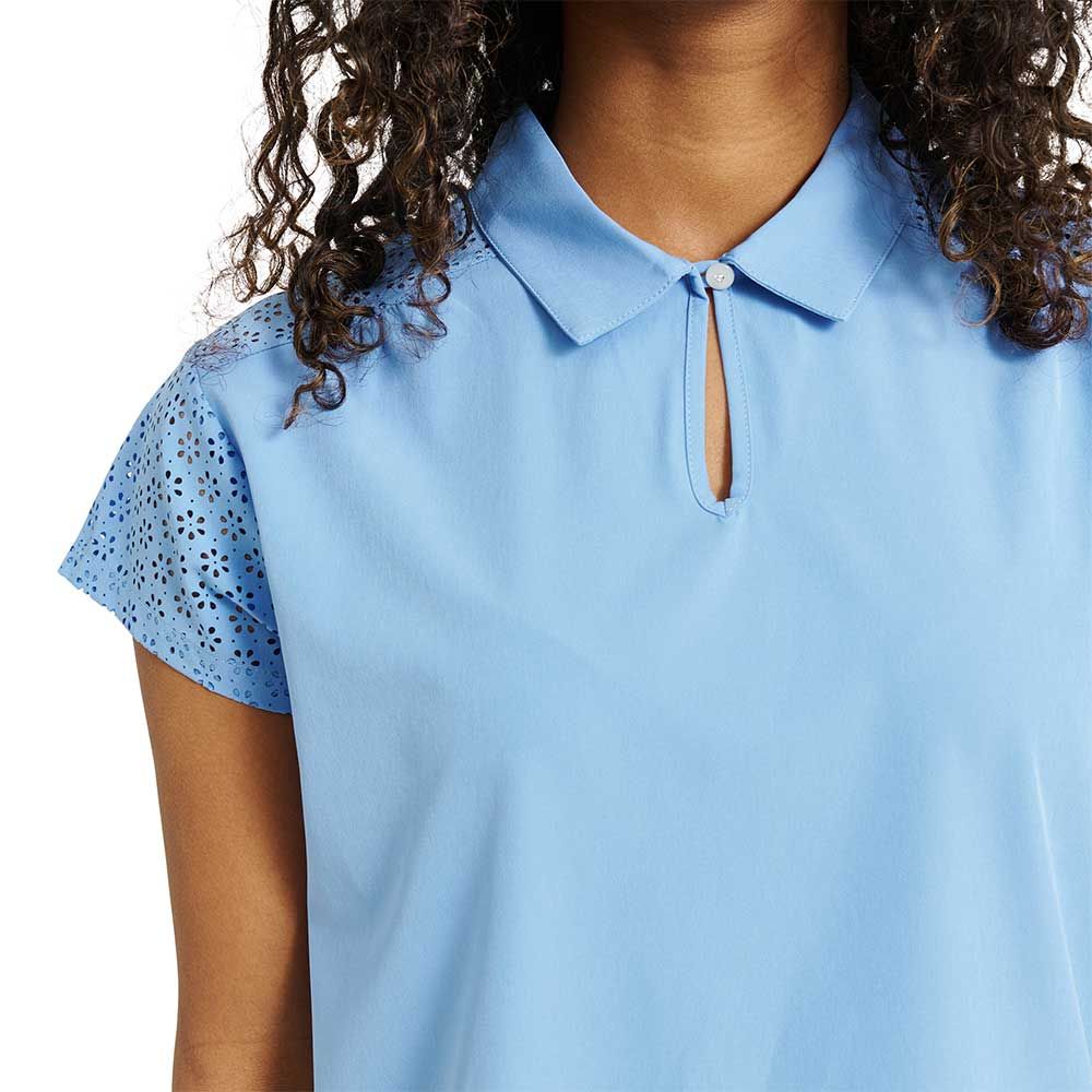 Manga Cupsleeve är en luftig topp med lös passform, perfekt för vår- och sommardagar på golfbanan eller som en stilfull del av din vardagsgarderob. De dekorativa hålade blommönstren på ärmarna och ryggen ger en feminin och elegant touch. Det lätta och bekväma materialet gör den idealisk för varma dagar. En mångsidig topp som kombinerar stil och funktion!