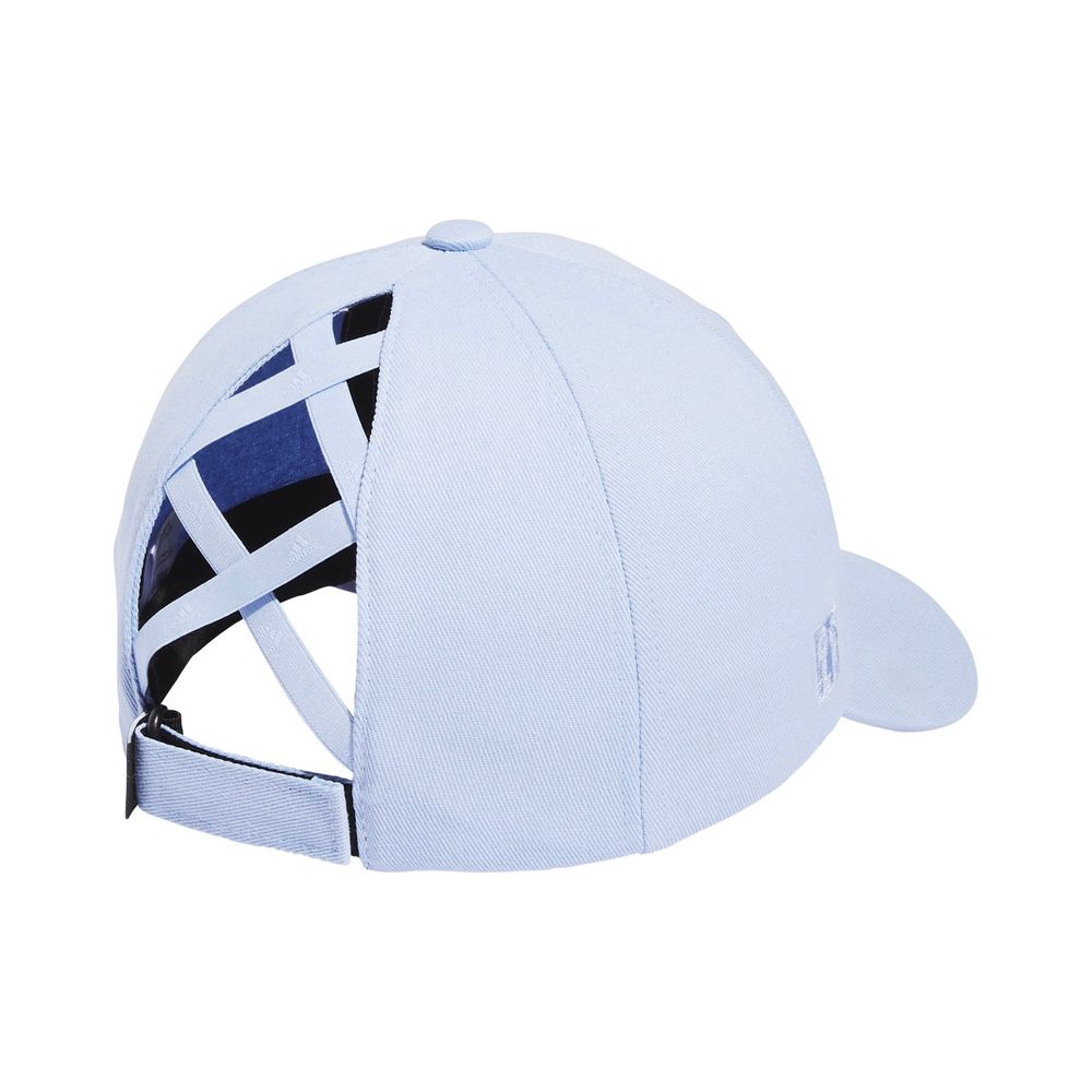 Den här golfkepsen har ett snyggt, korslagt elastiskt bakstycke som ger plats åt hästsvansen. Justera spännet för en skräddarsydd passform. Konstruktionen i bomullstwill ger komfort hela dagen.