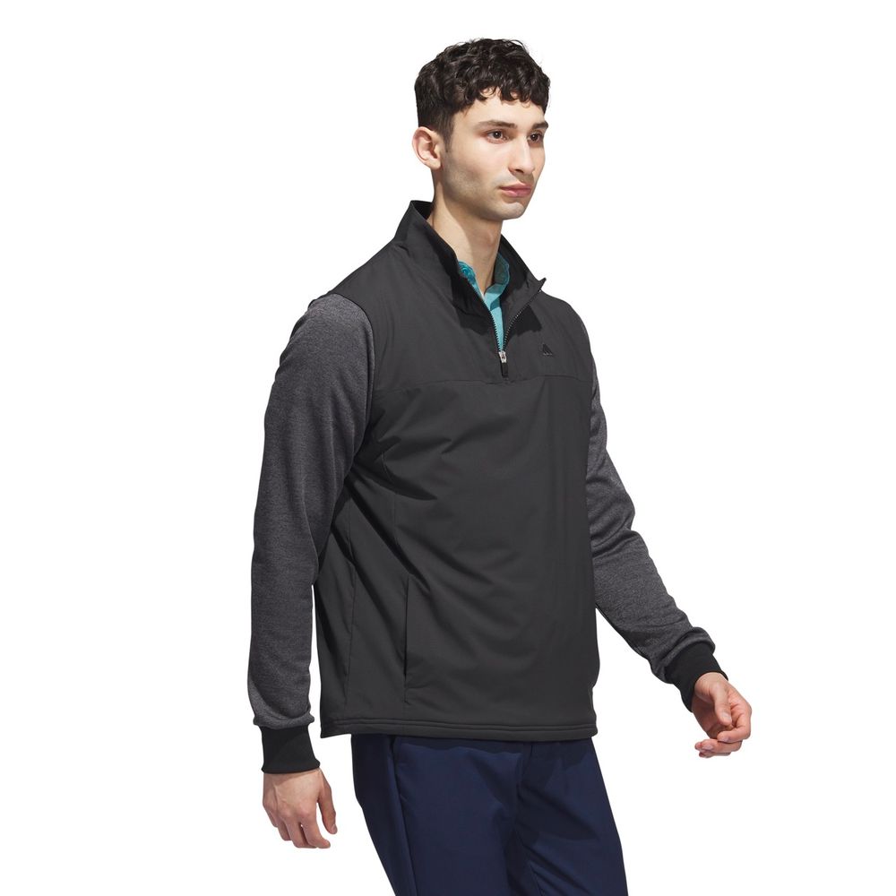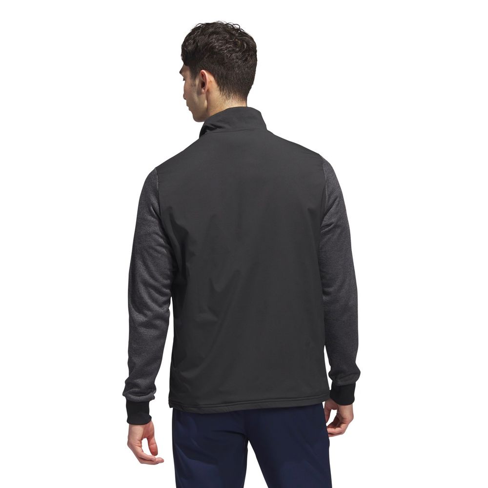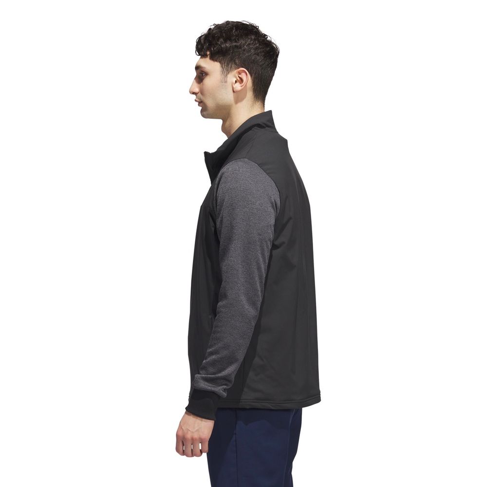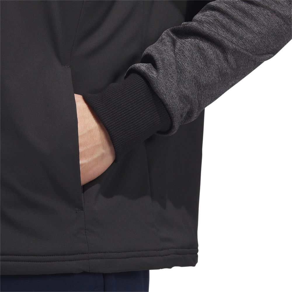 Spela bekvämt när temperaturen minskar i denna jackan. Den håller värmen från första till sista hålet med hjälp av de ribbade muddarna och ståkragen. Den vattenavvisande ytan skyddar mot fukt som ofta uppstår ute på banan. Mjuk fleece i ärmarna ger dig en skön känsla genom svingen.