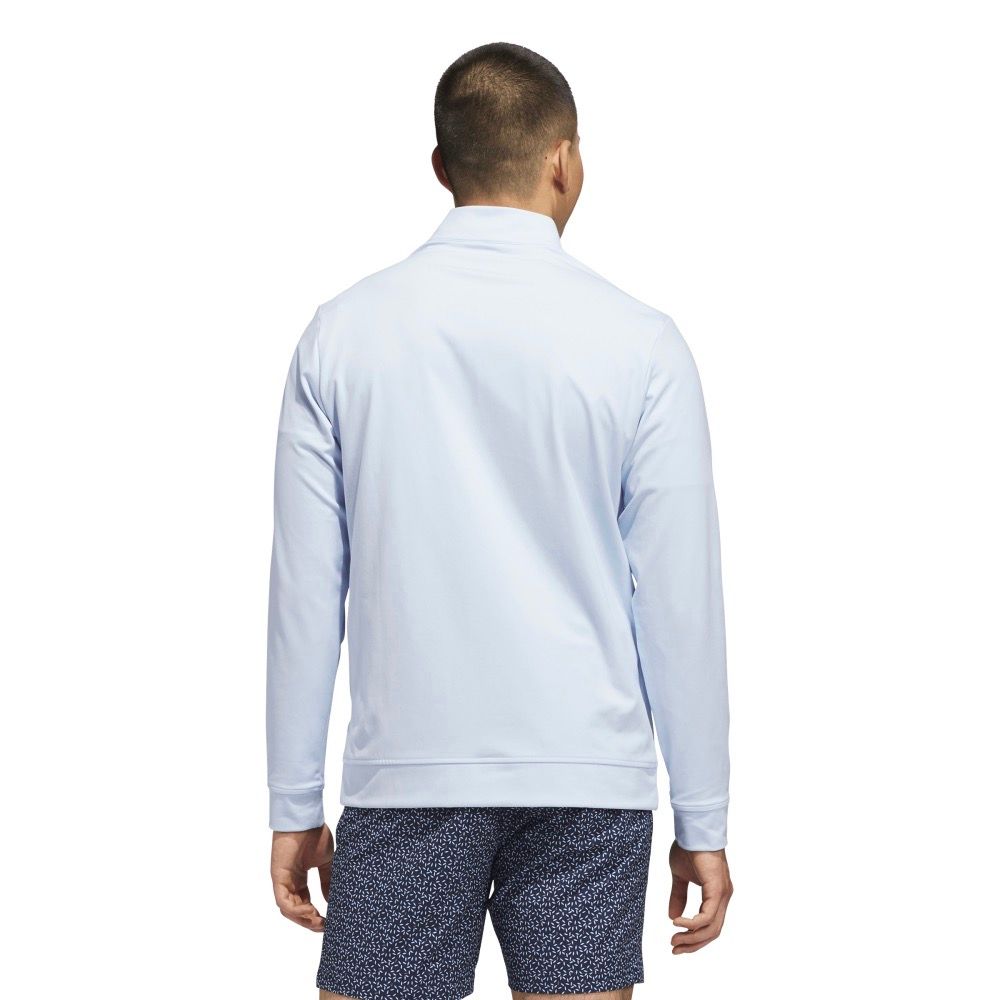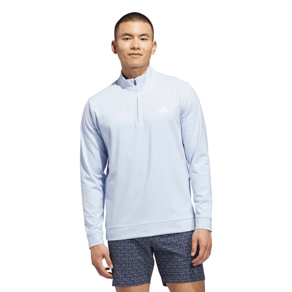 En ren och sportig tröja som fungerar lika bra på första tee som under uppvärmningen. Det mjuka interlocktyget ger en följsam känsla och lagom värme utan att bli tungt. Den höga kragen med halv zip gör det enkelt att justera efter vind och tempo, och regular fit ger en naturlig passform som låter dig rotera fritt genom svingen. En mångsidig del av garderoben som fungerar året runt.