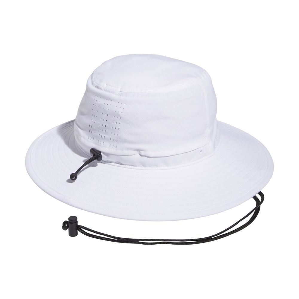 Den här golfhatten från Adidas har en bred skärm som håller solens strålar borta från ansiktet och skyddar nacken. Den fuktabsorberande AEROREADY-funktionen håller dig torr. En justerbar dragsko sitter på hatten för att anpassa till huvudstorleken samt för att skydda hatten från att blåsa av i vinden.