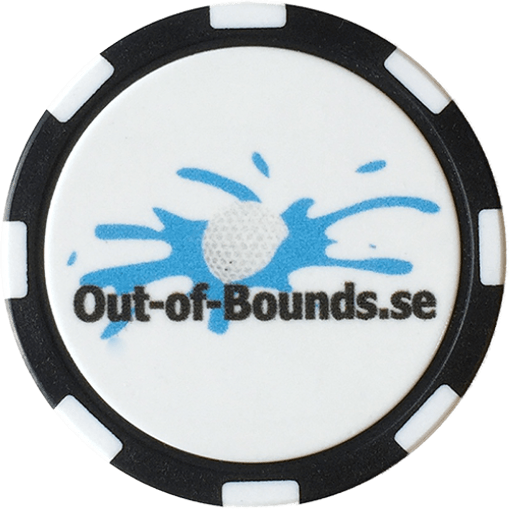 En tydlig och tung bollmarkör i form av ett pokerchip. Båda sidor pryds med Out of Bounds logotyp.