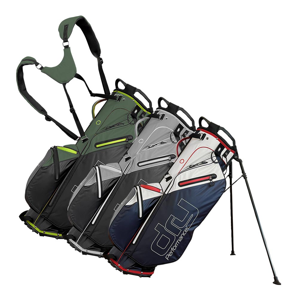 Detta är en vattentät hybridbag från Dry Performance. Välj om du vill använda den som vagnbag eller som en bärbag med den medföljande ergonomiska dubbelselen. Bagen har 5 fickor varav en är en kylficka och en är en vadderad ficka för exempelvis klocka eller mobiltelefon. Fäst paraplyet på utsidan och ge dig ut på banan, oavsett väder!