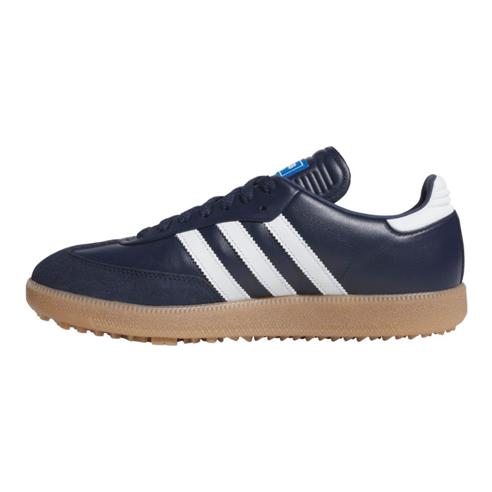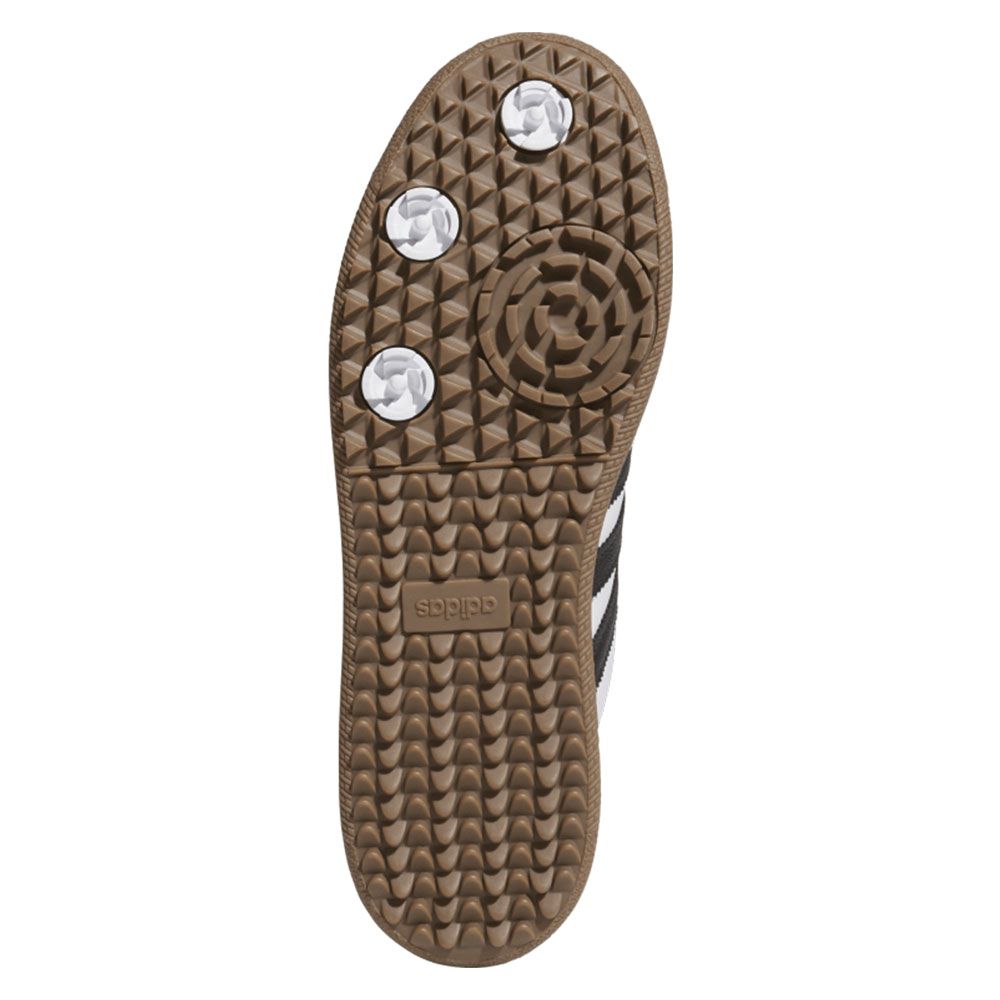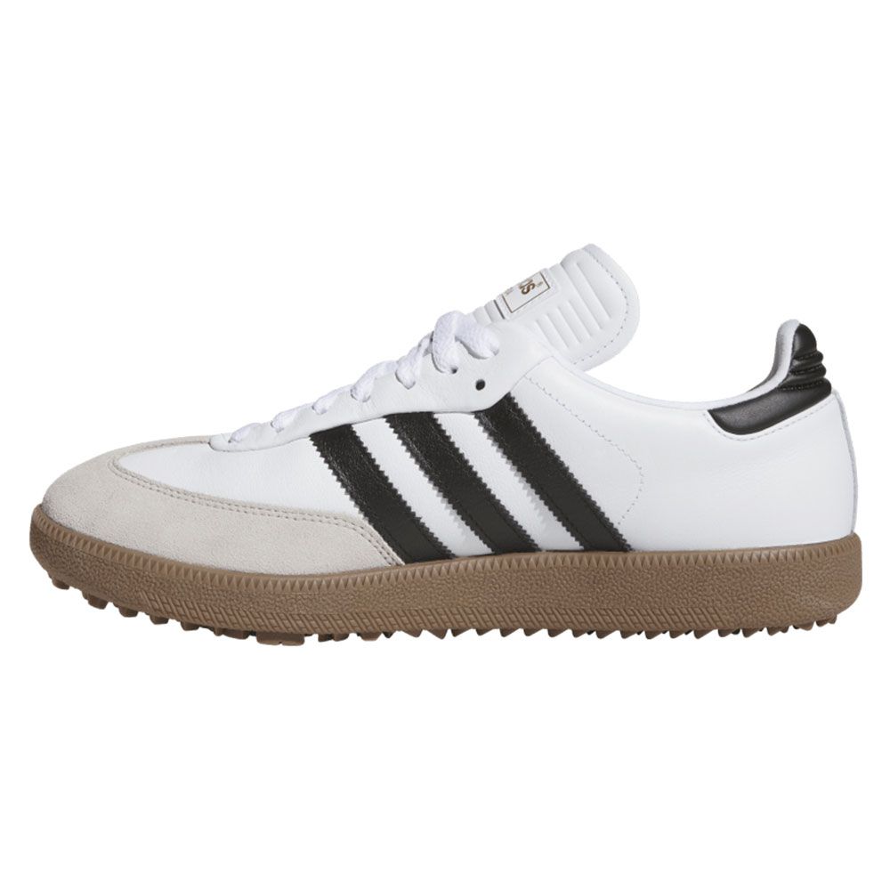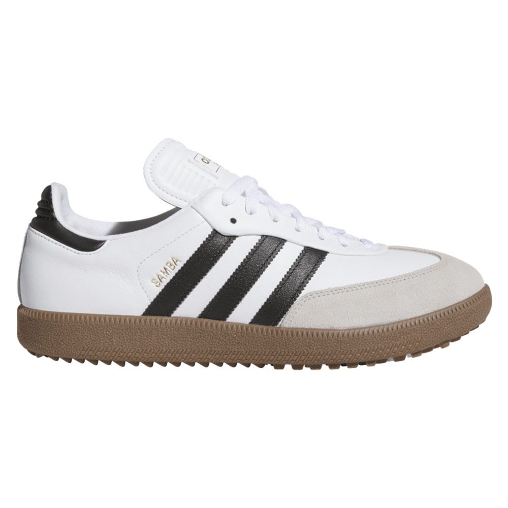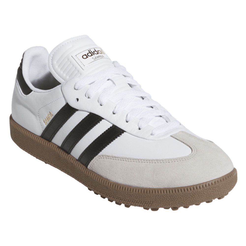 Ta med dig den ikoniska Adidas Originals looken ut på golfbanan! Dessa golfskor kombinerar tidlös design med prestanda anpassad för spelet. Läderovandel med mockadetaljer och den klassiska T-formade tån bevarar den autentiska originals-stilen, medan en dämpad mellansula och en gummiyttersula ger stabilt grepp och komfort från första drive till sista putt.
