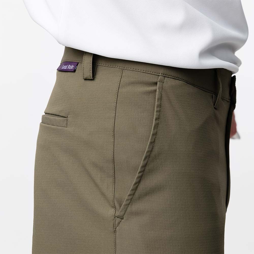 Tekniska golfbyxor som kombinerar rörelsefrihet på banan med en stilren silhuett utanför den. Det lätta ripstop-tyget är snabbtorkande, ventilerande och vattenavvisande, vilket gör byxorna lika funktionella under en runda som under en hel dags användning. Den skräddade passformen och de smart placerade fickorna ger en ren, modern look som fungerar i alla sammanhang.