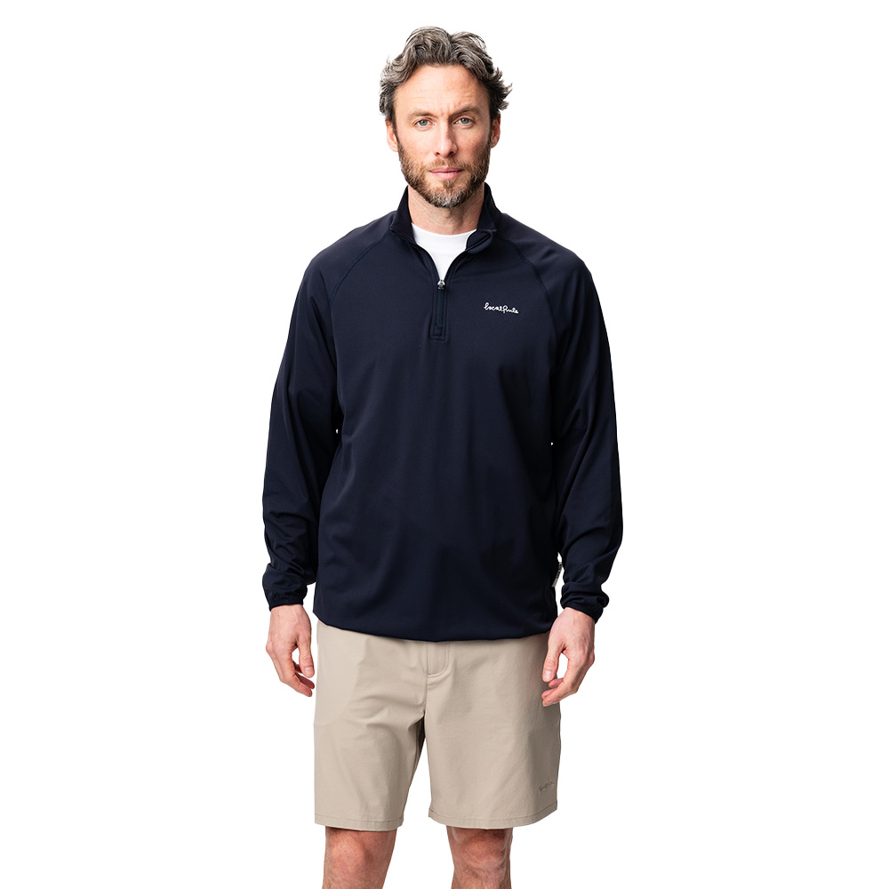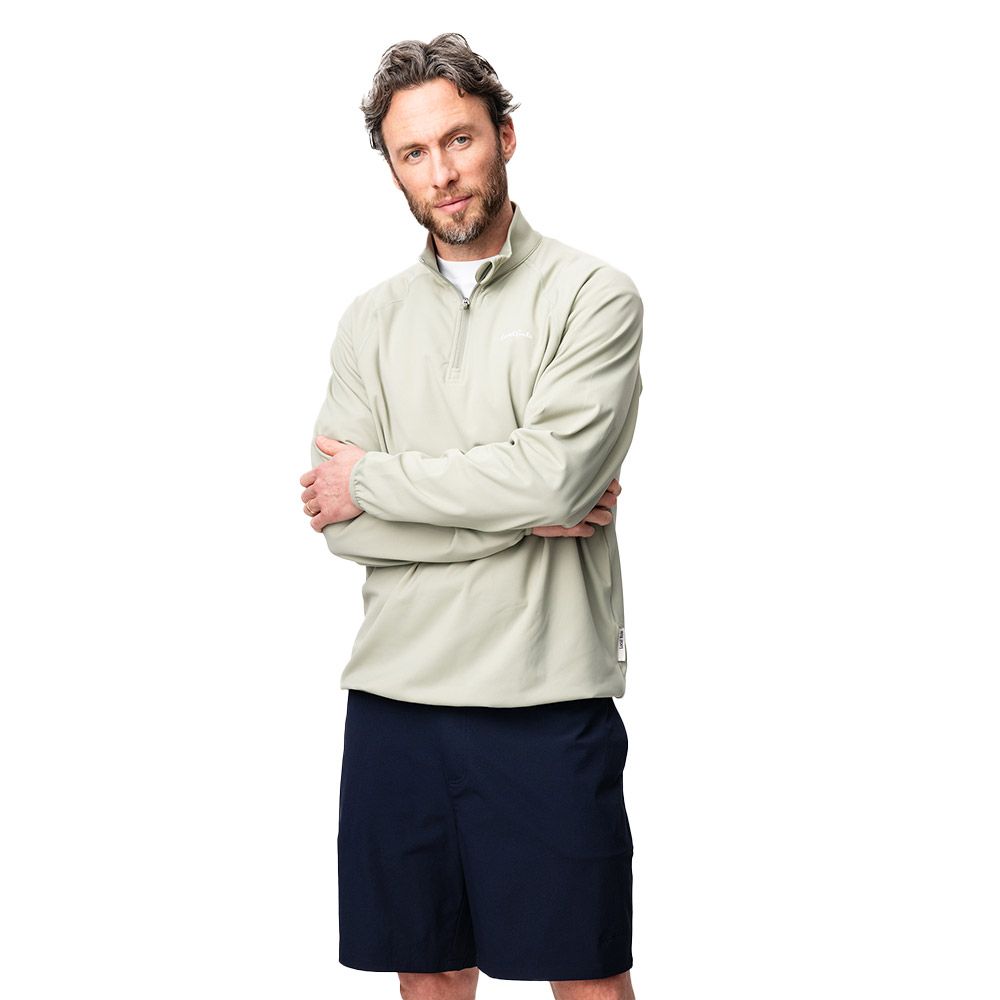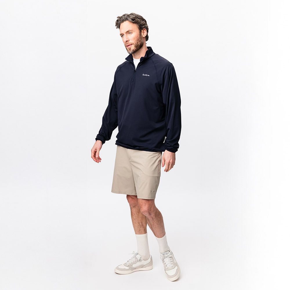En teknisk quarter zip designad för golfare som vill ha värme utan att kompromissa med rörelsefrihet. Det mjuka interlock-tyget ger en behaglig känsla mot huden, samtidigt som ventilation och stretch gör plagget perfekt för allt från kyliga morgnar på banan till vardagsbruk. Den rena skandinaviska silhuetten gör den lika självklar i spelet som i stan.