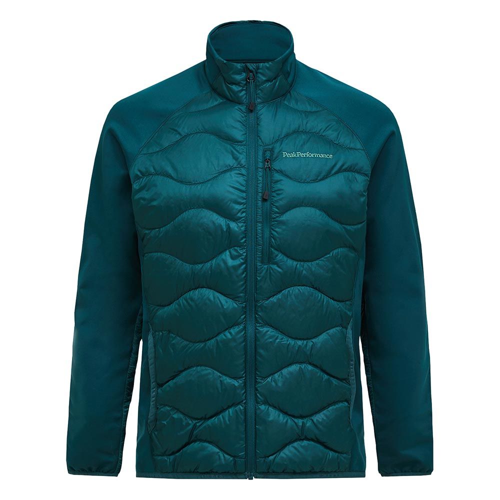 Jackan har stretchiga jerseypartier på sidorna och ärmarna. Denna passar perfekt som en lager-på-lager-jacka och är en ännu bekvämare variant av Peaks Helium-serie. Den är lätt och tar väldigt lite plats när den packas ihop. Med vind- och vattenavvisande paneler samt foder av 90/10-ankdun, vilket gör den lämplig för en mängd olika utomhusaktiviteter. Plagget har utvecklats med ansvarsfullt framtaget dun som går att spåra genom Track My Down® -programmet.