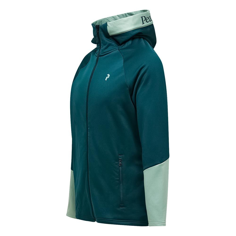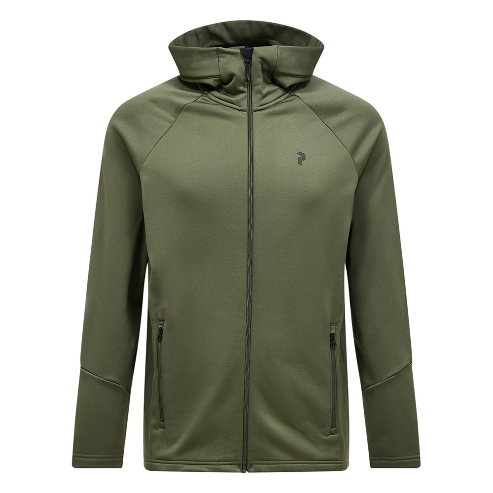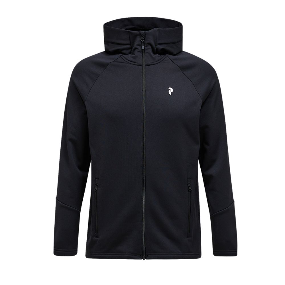 Den här mjuka mellanlagersjackan med huva är bekväm, stretchig och perfekt för golf och andra utomhusaktiviteter. Tillverkad av fukttransporterande och snabbtorkande tyg som håller dig varm och torr oavsett aktivitet. Krage med dubbla lager och hakskydd ger dig en bekväm passform utan att skava.