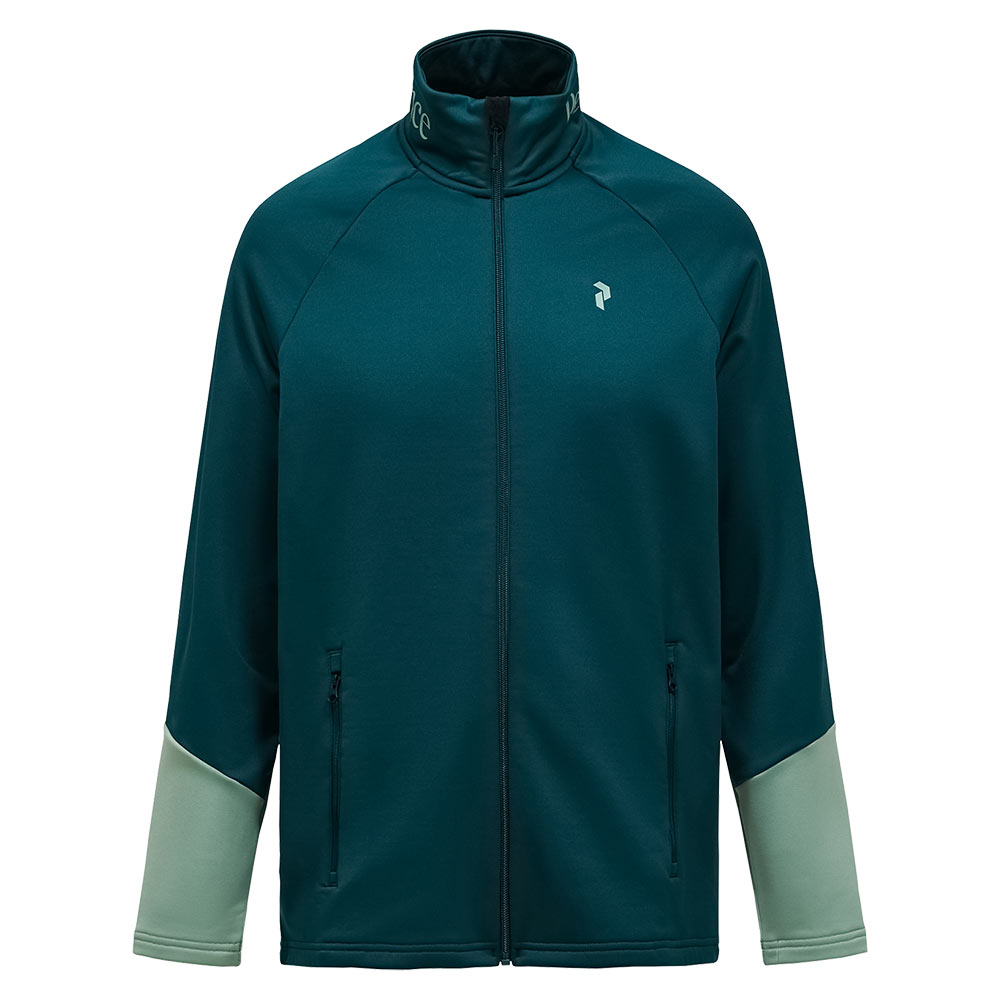 Den här mjuka mellanlagersjackan är bekväm, stretchig och perfekt för golf och andra utomhusaktiviteter. Tillverkad av fukttransporterande och snabbtorkande tyg som håller dig varm och torr oavsett aktivitet. Krage med dubbla lager och hakskydd ger dig en bekväm passform utan att skava.