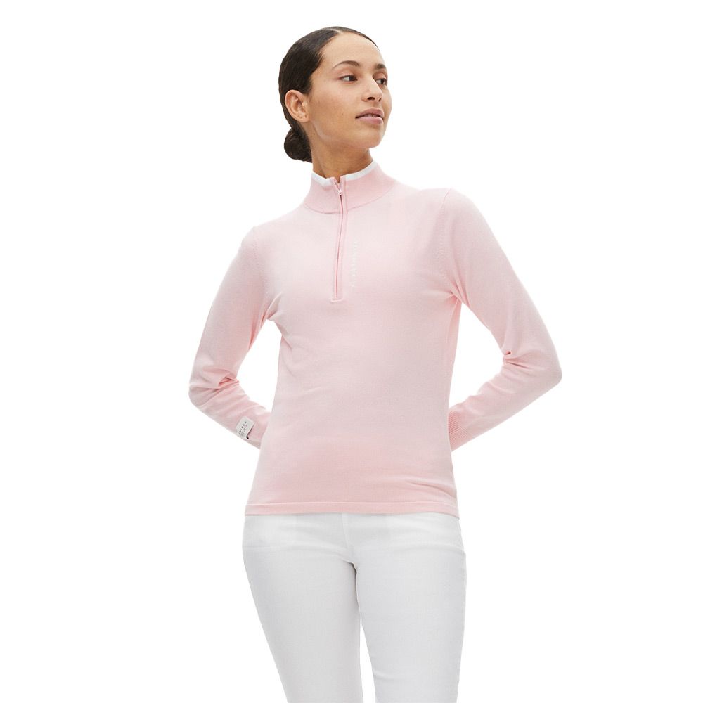 Denna stickade tröjan är gjord av mjuk bomull och flexibel elastan, för att ge dig komfort både på och utan för banan. Perfekt för lager på lager, om du vill uppnå en klassisk eller preppig look. Den höga kragen med halv zip ger dig en skön känsla.