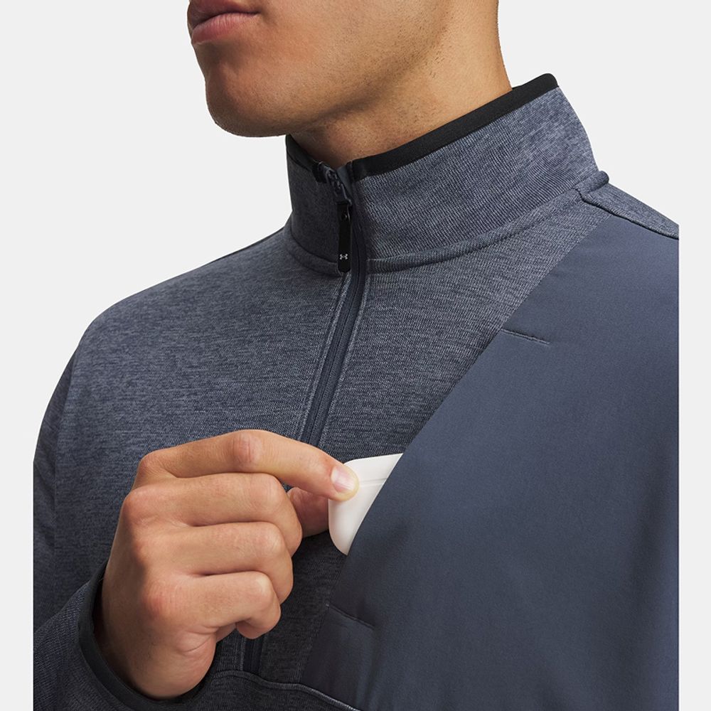 Tröjan är utrsutad med UA Storm-teknologi som stöter bort vatten utan att kompromissa med andningsförmågan. Den har en borstad insida för maximal komfort och rörelsefrihet. Tröjan har slitstarka, vävda förstärkningar som ger extra skydd och hållbarhet. Förvara dina tillhörigheter säkert i den praktiska bröstfickan.