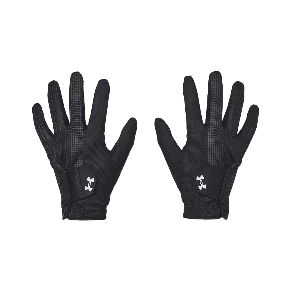 Greppa säkert i blött väder med dessa golfhandskar från Under Armour. Storm-tekniken avvisar regn utan att förlora andningsförmågan, så att dina händer förblir torra men inte svettiga. Handflatan är gjord i syntetiskt läder som ger ett bekvämt och säkert grepp i blöta förhållanden.