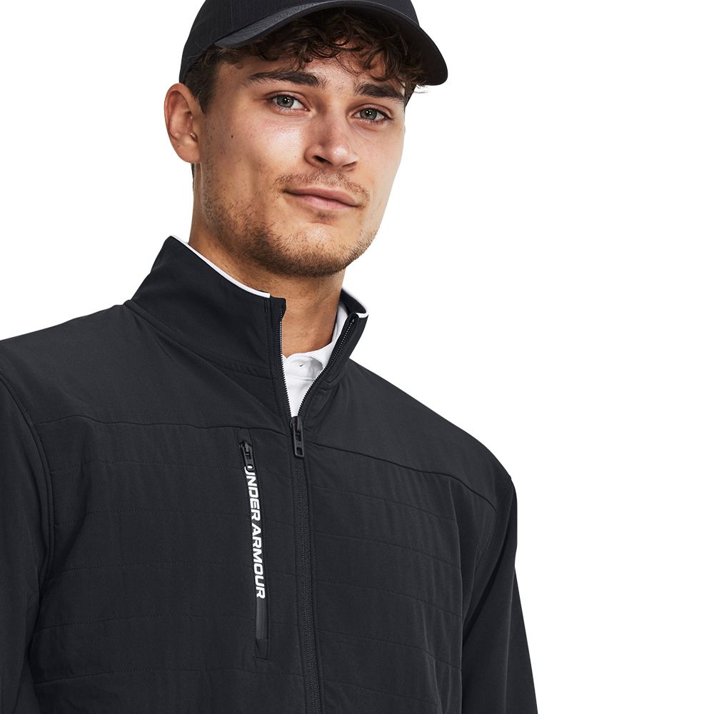 Låt inte vädret hindra dig för att spela en runda. Denna jackan har UA Storm-teknologi som stöter bort vatten utan att ge avkall på andningsförmågan. Vindtätt material skyddar dig från blåst. Slitstarkt stretchvävt yttertyg med mjukt fleecefoder håller dig varm, perfekt när det är lite kyligare ute. För att du ska kunna röra dig fritt när du svingar har jackan 4-vägs stretchmaterial som rör sig i alla riktningar. Zip vid fickorna på magen och bröstet.